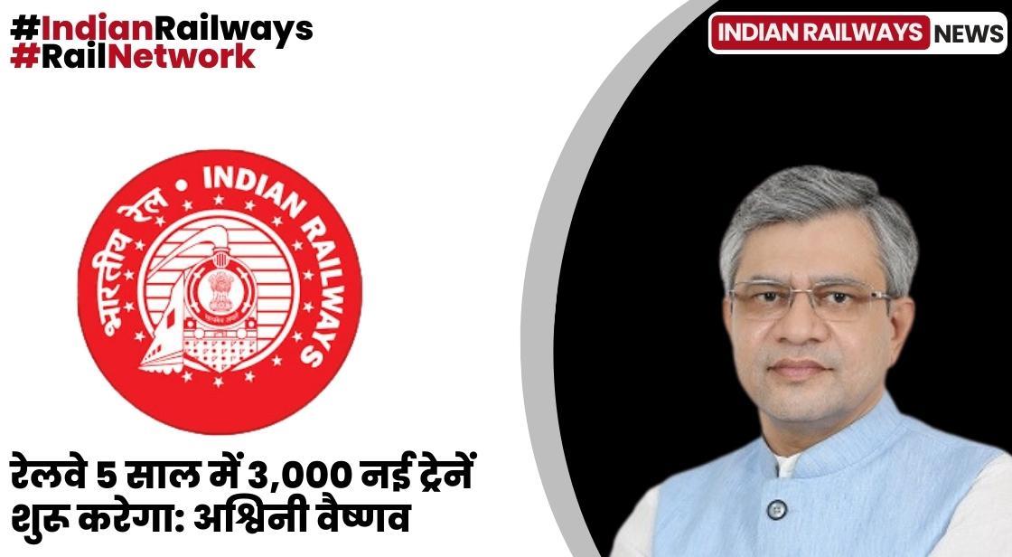 रेल मंत्री अश्विनी वैष्णव Railway Minister Ashwini Vaishnav ने अगले चार से पांच वर्षों के भीतर 3,000 नई ट्रेनें शुरू करने की अपनी पहल की घोषणा की, जिसका लक्ष्य रेलवे की वर्तमान यात्री क्षमता को 800 करोड़ से बढ़ाकर 1,000 करोड़ करना है।